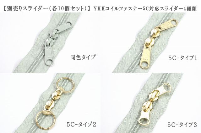 ※5Cのコイルファスナーには5Cのスライダーをご選択ください。3Cのスライダーはサイズが合いませんのでご注意ください。